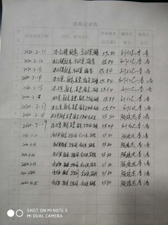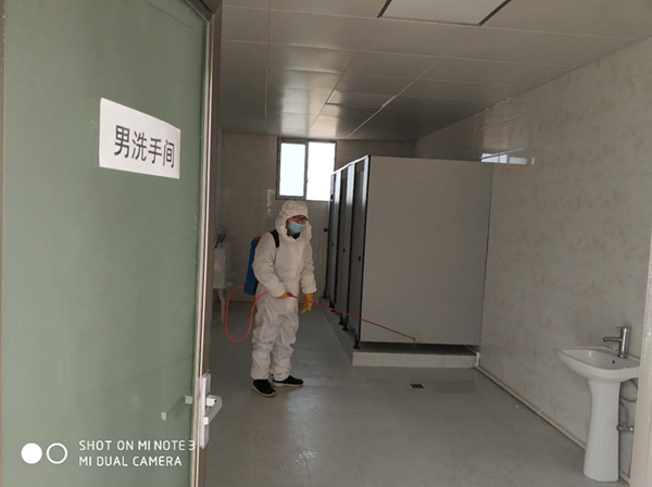 3、未返工人員自我監(jiān)測(cè) 四、搞好消毒衛(wèi)生,營(yíng)造健康環(huán)境 分公司組織專人每日對(duì)生活區(qū)辦公室、餐廳、衛(wèi)生間等場(chǎng)所每日消毒兩次,要求員工做好自我防護(hù),勤消毒勤洗手,共同打造抗擊疫情的良好環(huán)境。