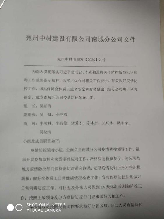 2020年伊始,一場(chǎng)突如其來的新冠疫情爆發(fā)于武漢,肆虐于全國(guó),不斷攀升的疫情數(shù)據(jù)牽動(dòng)著每個(gè)人的神經(jīng)。集團(tuán)和公司對(duì)此次疫情高度重視,要求各下屬單位全力以赴應(yīng)對(duì)疫情。為此南城分公司積極響應(yīng)號(hào)召,全力開展疫情防控工作,堅(jiān)持“疫情就是命令,防控就是責(zé)任”的原則,堅(jiān)決打好疫情防控攻堅(jiān)戰(zhàn)。 一、加強(qiáng)組織領(lǐng)導(dǎo),強(qiáng)化防控意識(shí) 分公司以深入貫徹落實(shí)集團(tuán)公司文件精神為目標(biāo),密切配合當(dāng)?shù)卣ぷ?,成立以吳新海同志為首的疫情防控領(lǐng)導(dǎo)小組,細(xì)化人員責(zé)任,明確組織分工,從思想高度做好打贏防疫攻堅(jiān)戰(zhàn)的準(zhǔn)備。
