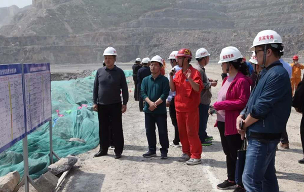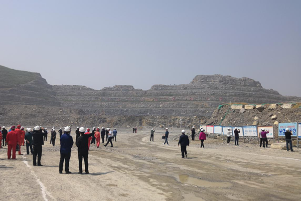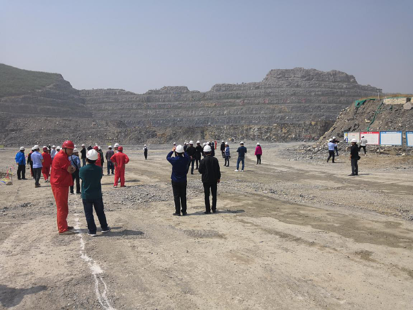 河南省露天礦山雙重預(yù)防體系建設(shè)示范企業(yè)研討會(huì)參會(huì)人員參觀千業(yè)水泥谷堆后水泥灰?guī)r礦現(xiàn)場(chǎng)