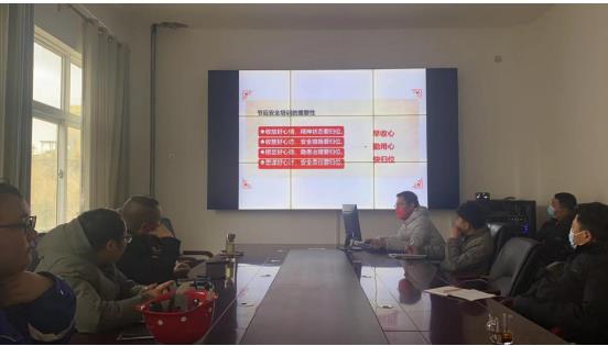寶豐分公司參加業主召開的節后安全生產會議,部署節后復工復產相關工作。業主要求我們做到以下幾點:1、開一次復工收心會;2、組織一次安全教育培訓;3、組織復工隱患排查(查思想、查隱患、查違章);4、加強現場安全管理。