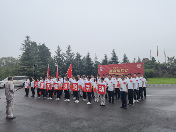 金秋九月,秋雨綿綿。9月27日下午,為增強職工健康文明、積極向上的生活方式,以良好的精神面貌迎接新中國成立72周年,白坪分公司與業主單位登封中聯水泥有限公司組織開展了“迎國慶”健身跑活動。  活動開幕式前,來自各部門50多名職工身著統一服裝,精神飽滿的在辦公樓前列隊,登封中聯水泥有限公司劉總為本次“迎國慶”健身跑活動致辭,秉承快樂工作,健康生活的宗旨,雨天在保證安全的前提下,跑出快樂,跑出活力。  全體職工傾情演唱《歌唱祖國》,鮮艷的五星紅旗伴隨著嘹亮的歌聲在秋風中飄揚。出發前大家在活動版面共同簽字助力,并為祖國母親送上生日祝福。  一聲令下跑步正式開始,一個個似箭如梭的身影形成一道亮麗的風景線。比賽現場風雨無阻,激情四射。  活動結束,由公司代表為在此次健身跑活動中取得優異成績的員工頒發紀念獎品,激勵大家共同努力,鍛煉身體,以健康良好的精神面貌為祖國貢獻力量。  “迎國慶”健身跑活動,增強了體質,跑出了健康,調動了職工運動的熱情和積極性。放飛自我,展望未來;以更加飽滿的工作熱情和昂揚向上的精神風貌投入到今后的征程中,以優異的成績向新中國成立72周年華誕獻禮。