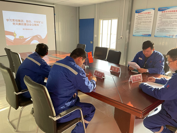 2021年4月9日,焦作晉城黨支部召開全體黨員大會,集中學(xué)習(xí)貫徹落實2021年中國建材集團(tuán)、中國建材股份、中材礦山黨風(fēng)廉政建設(shè)會議材料,會議由支部書記杜國賓支持,支部全體黨員參加。