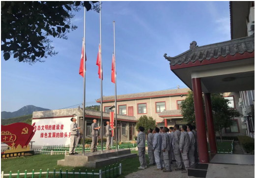 伴隨著雄壯的《義勇軍進(jìn)行曲》,五星紅旗冉冉升起,隨風(fēng)飄揚(yáng),全體員工齊唱國歌,向國旗行注目禮,目光凝視著迎風(fēng)飄揚(yáng)的五星紅旗,心中寄托著對黨無限的熱愛、崇高的敬意以及深情的祝福。